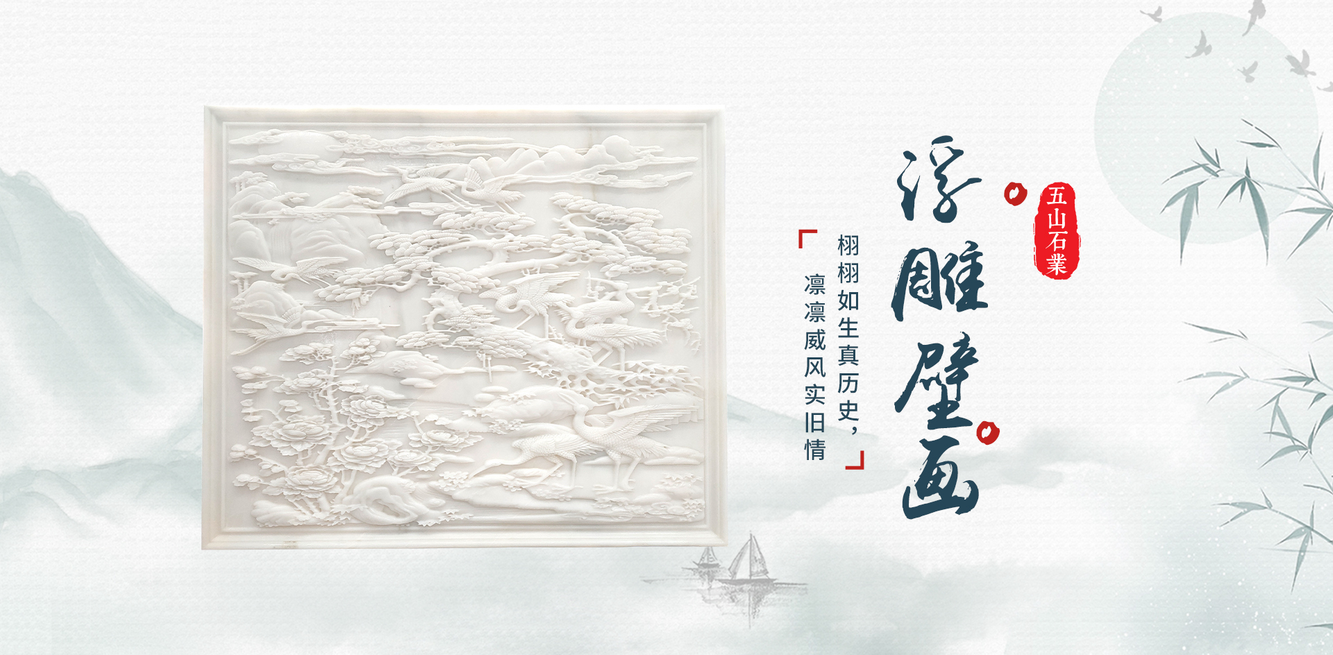漢白玉松鶴浮雕